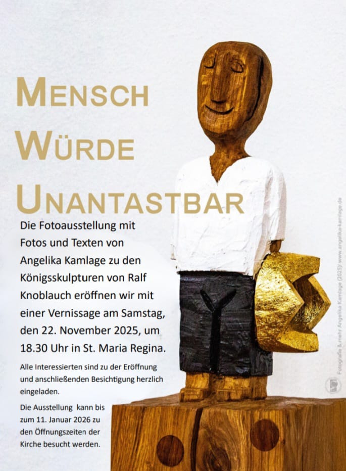 Aktuelle Informationen zu Aktionen und Ausstellungen teile ich in einer WhatsApp-Gruppe, die ausschließlich der Information rund um die Königsfiguren dient. Wenn Sie hinzugefügt werden möchten, nehmen Sie bitte unter Angabe Ihrer Handynummer mit mir Kontakt auf.